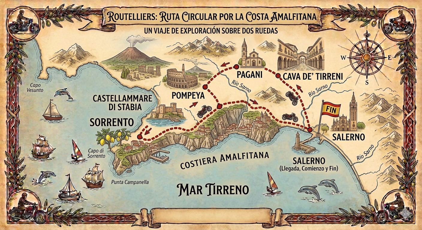 Sorrento → Castellammare di Stabia → Pompeya → Pagani → Cava de’ Tirreni → Salerno